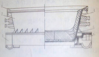 這兩種接包的區別在于,接包內熔塊的脫包方式不同,前者是靠兩個偏心翻包軸將包內熔塊和鐵合金翻落,后者的結構則與熔塊爐相似,接包外殼具有一定錐度,在起吊接包外殼后脫模。